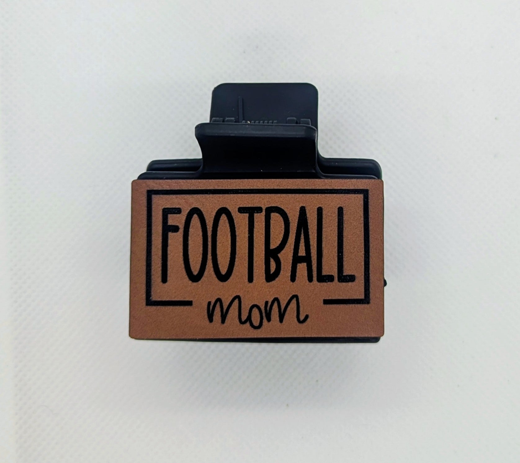 2 inch hair clip Football Mom. Available in brown or white leatherette.